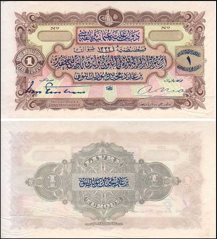 Turkey P.68r  1 Livre AH1332(1914)