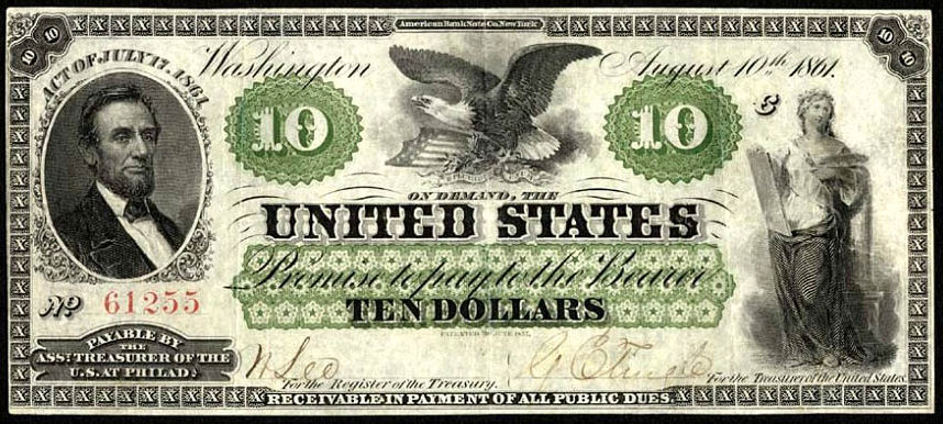 ![]() USA P.126b, Fr.7 10 Dollars 10.8.1861 Philadelphia |