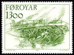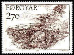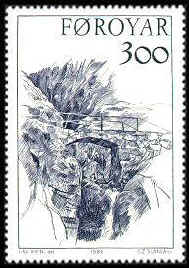 honored to have both his abstract landscapes and drawings shown on Faroe Postage Stamps. In 1986 he had three of his drawings of ancient stone bridges, SC.149, SC.150 and SC.151 engraved in three postage stamps. In 1999 he had an additional four landscapes shown on postage stamps.