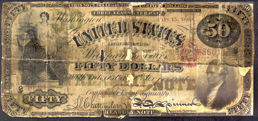 ![]() F.192a, P.UNL(~287) 50 Dollars 15.7.1864 DC |