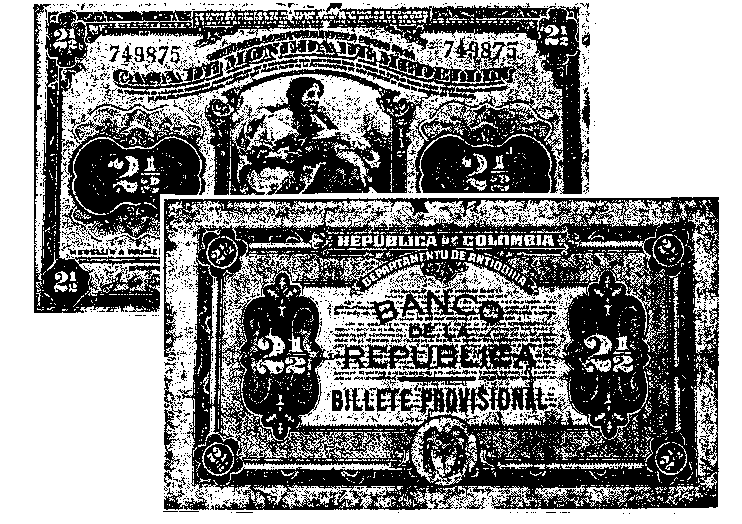 these bills were overprinted by the Banco de la Republica as provisional banknotes.