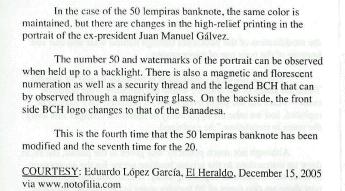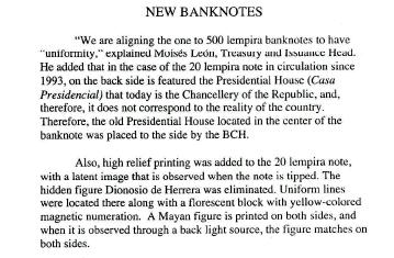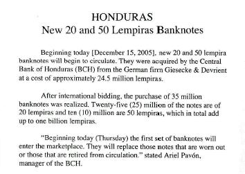 Home>Resources>Article Index>Honduras Index>New 20/50 Lempiras