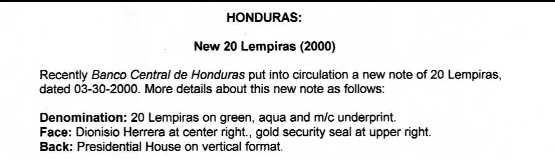 Home>Resources>Article Index>Honduras Index>New 20 Lempiras