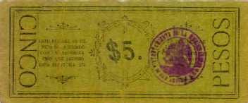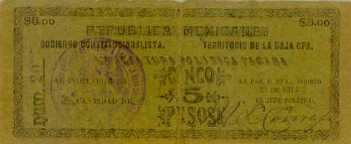 5 Pesos 1914 Goblerno Constitucionalista Territtorio de la Baja