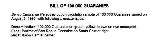 Home>Resources>Article Index>Paraguay Index>100,000 Guarani