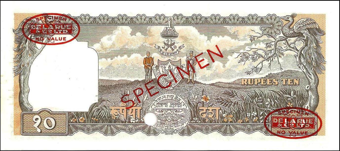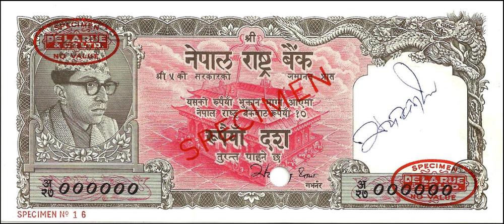 ![]() P.14S 10 Rupees ND(61) Sig. 6 Ah Specimen No.16 w/ Gov.Thapa autograph PPS |