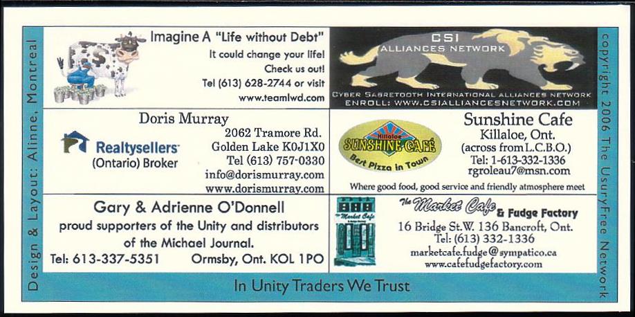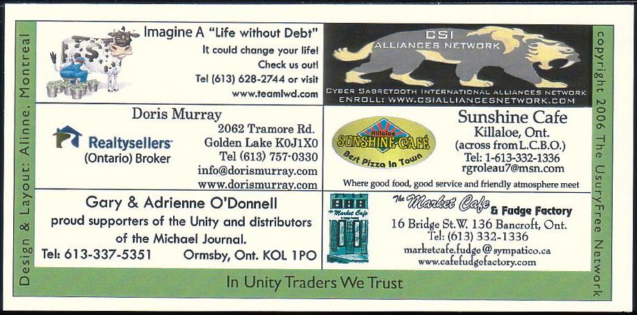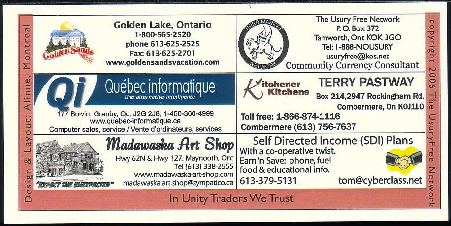 Bancroft and Barry's Bay. This network of Unity traders are unique as they