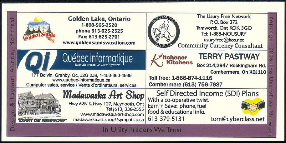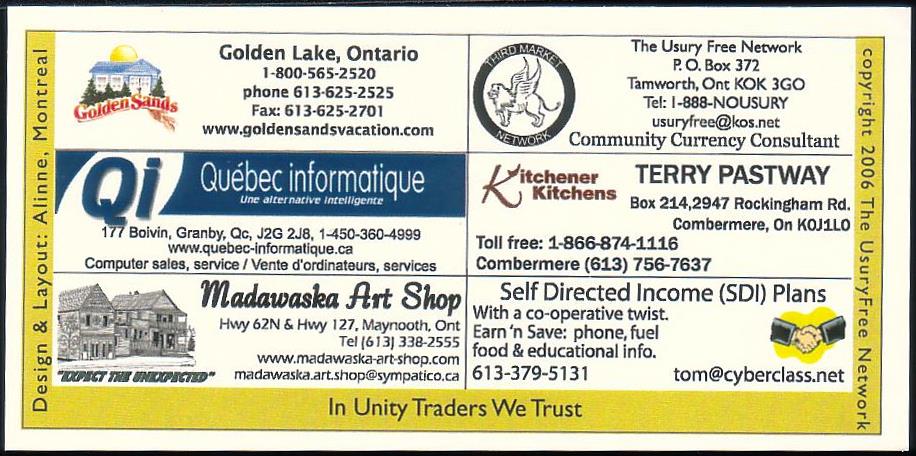 this Unity Dollar network. Other communities in Ontario and Quebec