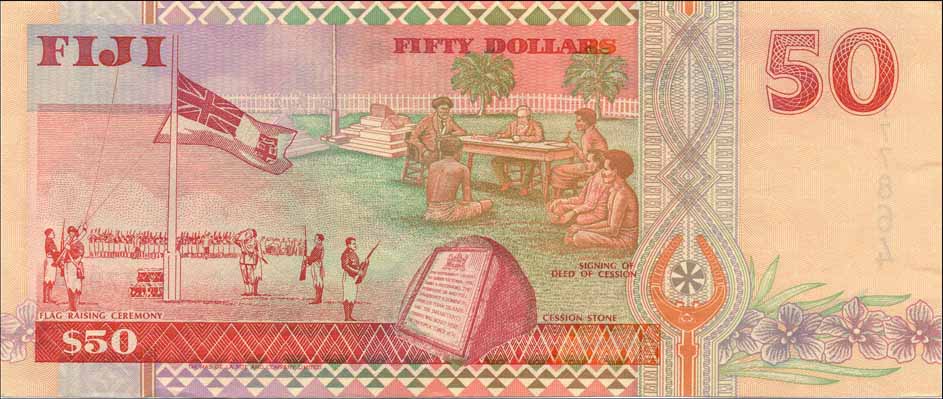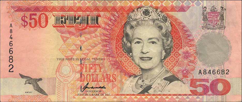 ![]() P.92a 50 Dollars ND(1996) Kubuabola signature |