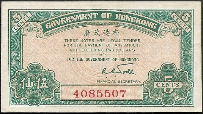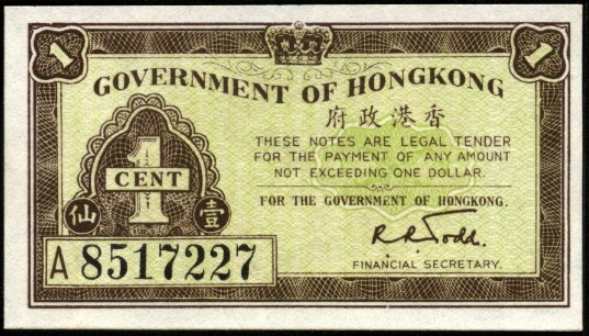 | The Government of Hong Kong (British Territory) began issuing banknotes in 1935 and ceased regular issues in 1995. In 1994 The Bank of China (Hong Kong) began issuing banknotes and in 2002 the Government of Hong Kong (Special Adm. Region of China) also began issuing banknotes for use in Hong Kong. | ||||