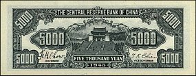 ![]() P.320x 10 Dollars on 5,000 Yuan ND(1945) Reproduction overprint on genuine chn note AB |