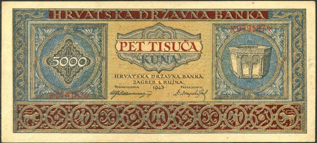 ![]() P.14 5,000 Kuna 15.7.1943 |