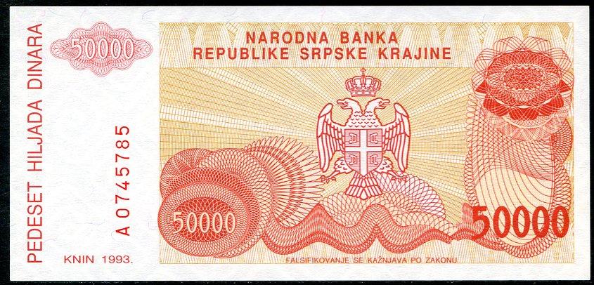![]() P.R21a 50,000 Dinara Knin 1993 DC |