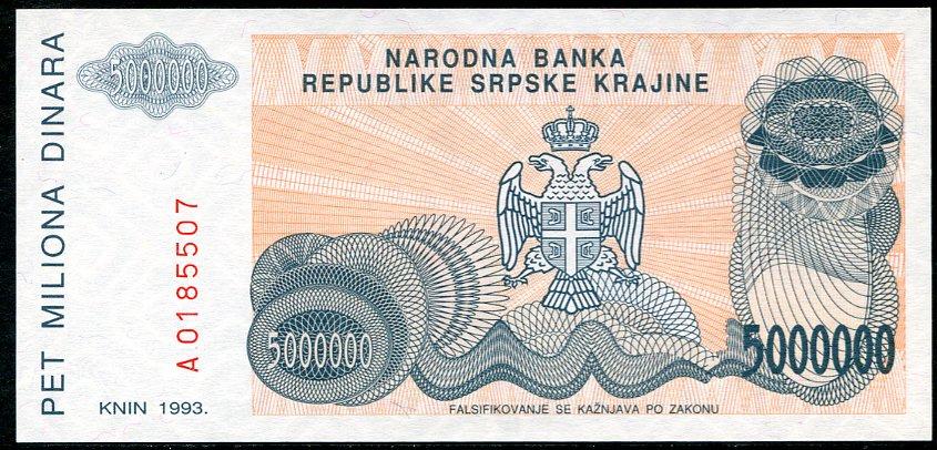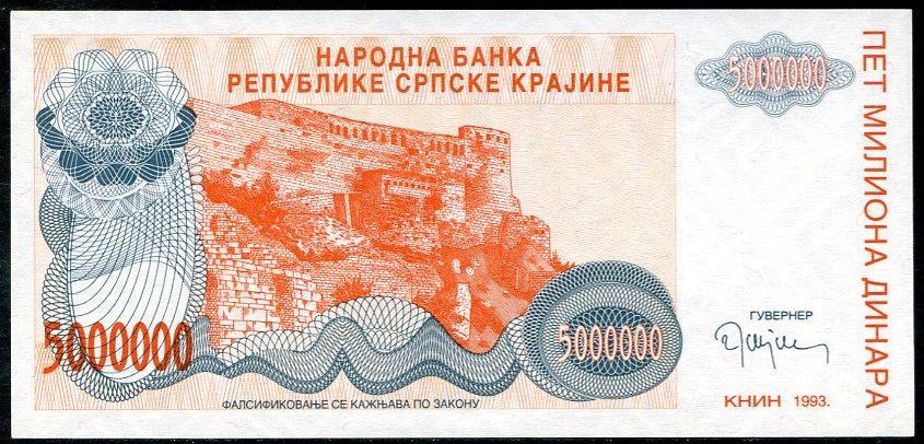 ![]() P.R24a 5 Million Dinara Knin 1993 DC |