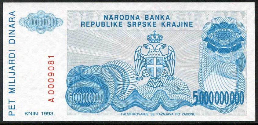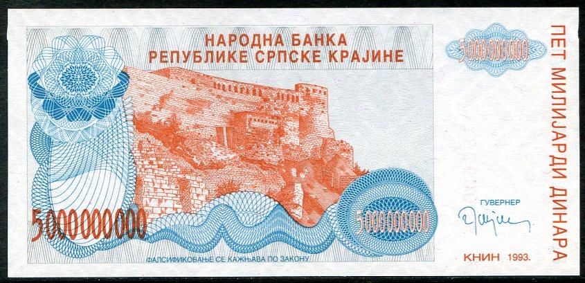 ![]() P.R27a 5 Milliard Dinara Knin 1993 DC |