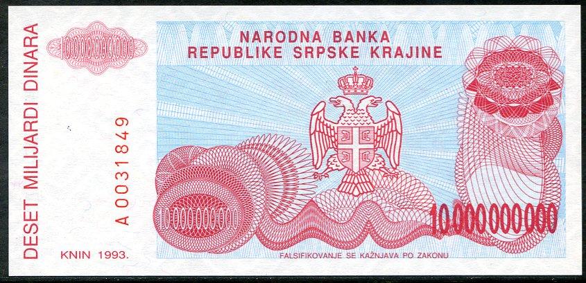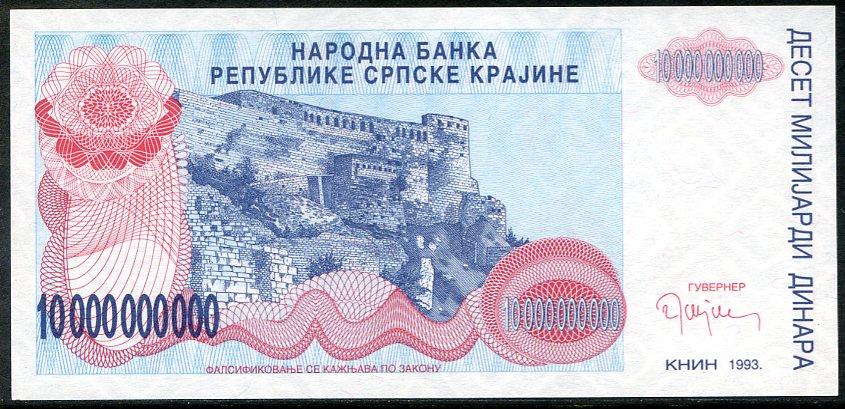 ![]() P.R28a 10 Milliard Dinara Knin 1993 DC |