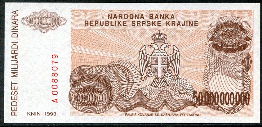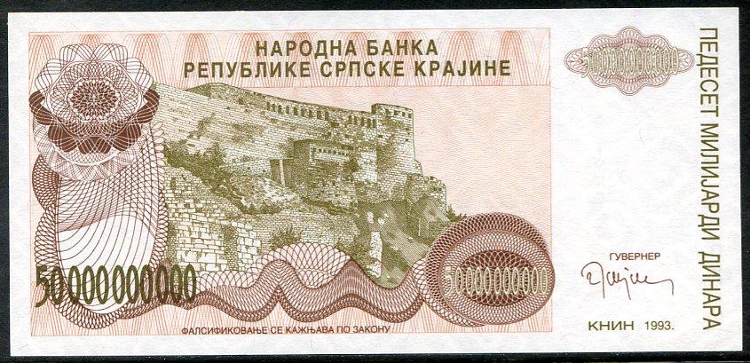 ![]() P.R29a 50 Milliard Dinara Knin 1993 DC |
