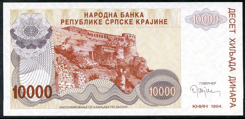 ![]() P.R31a 10,000 Dinara Knin 1994 DC |