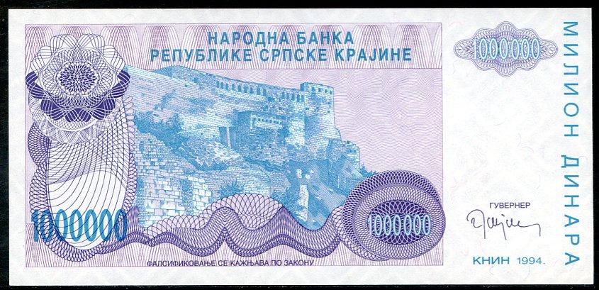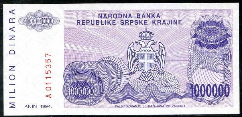 ![]() P.R33a 1 Million Dinara Knin 1994 DC |