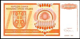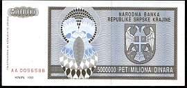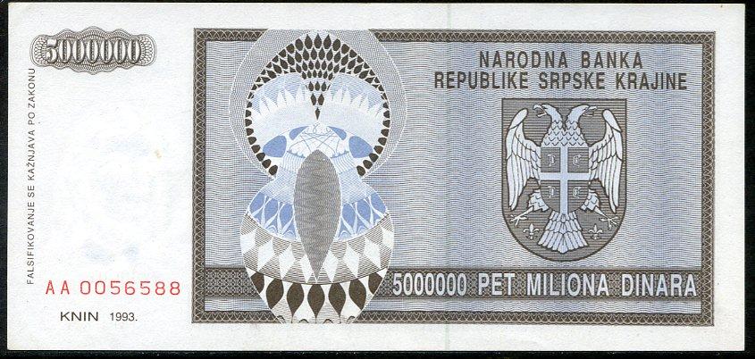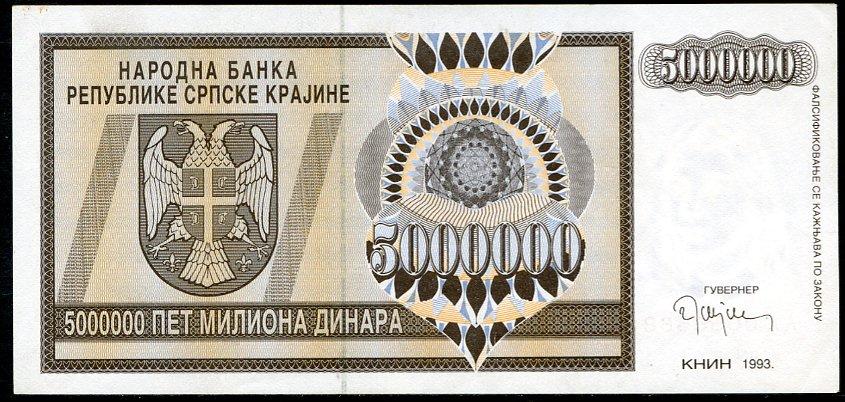 ![]() P.R11a 5 Million Dinara Knin 1993 DC |