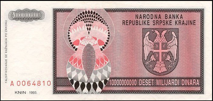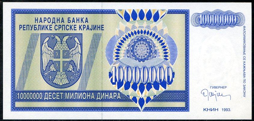 ![]() P.R12a 10 Million Dinara Knin 1993 DC |
