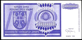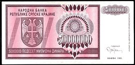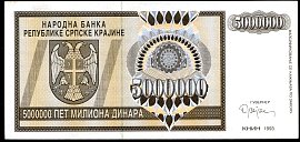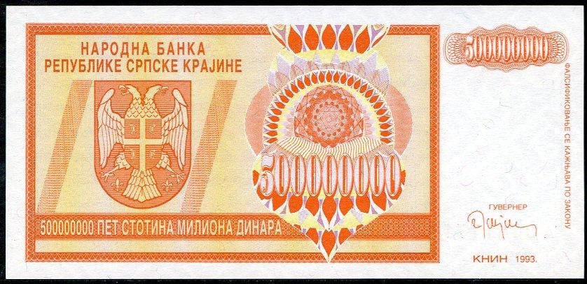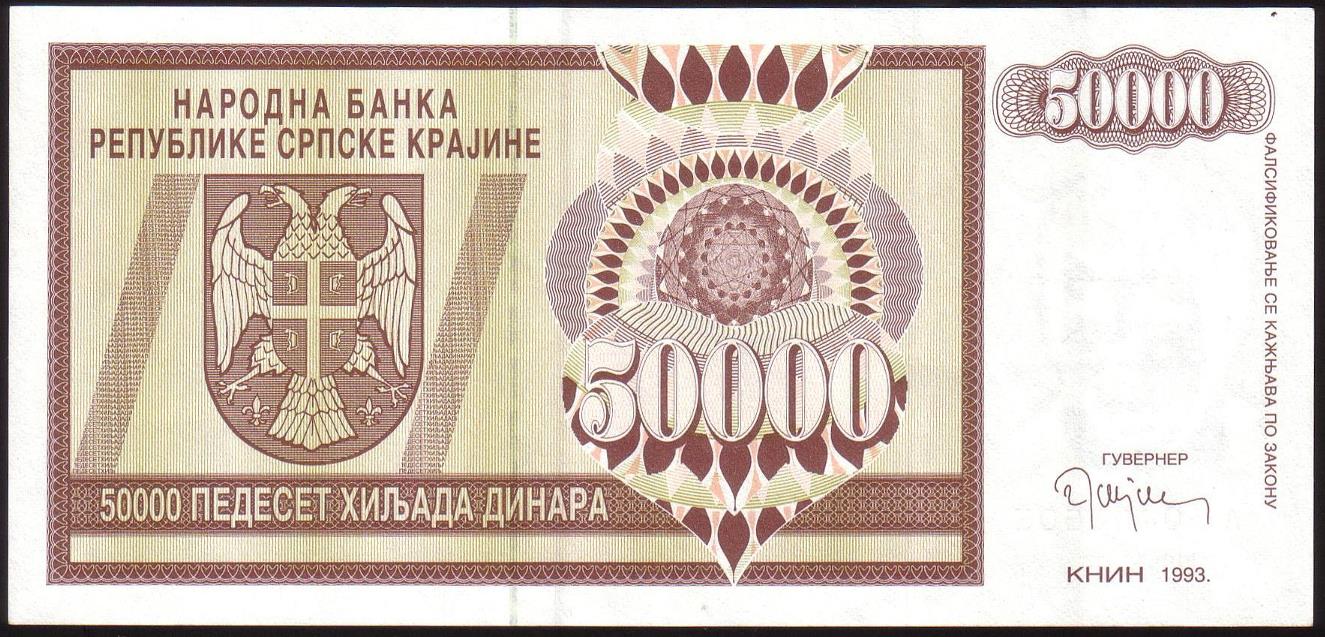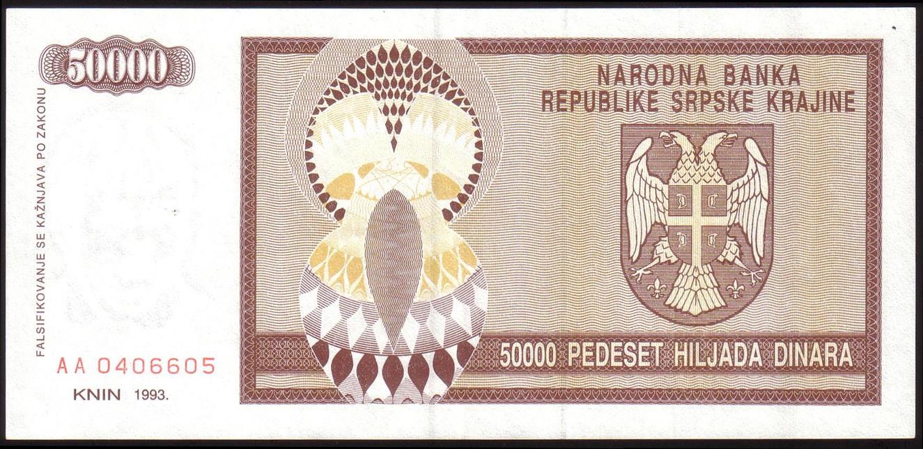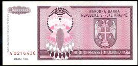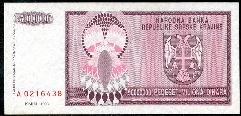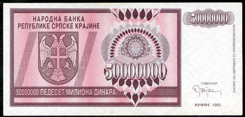 ![]() P.R14a 50 Million Dinara Knin 1993 DC |