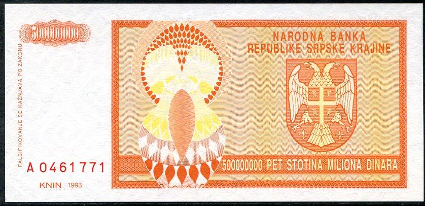 ![]() P.R16a 500 Million Dinara Knin 1993 DC |