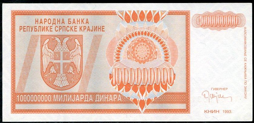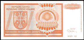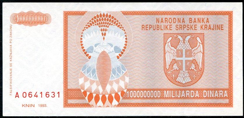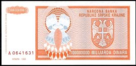 ![]() P.R17a 1 Milliard Dinara Knin 1993 DC |