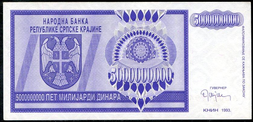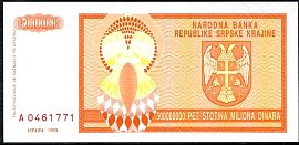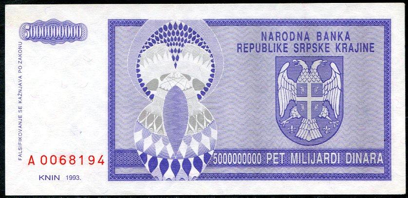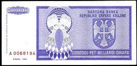 ![]() P.R18a 5 Milliard Dinara Knin 1993 DC |