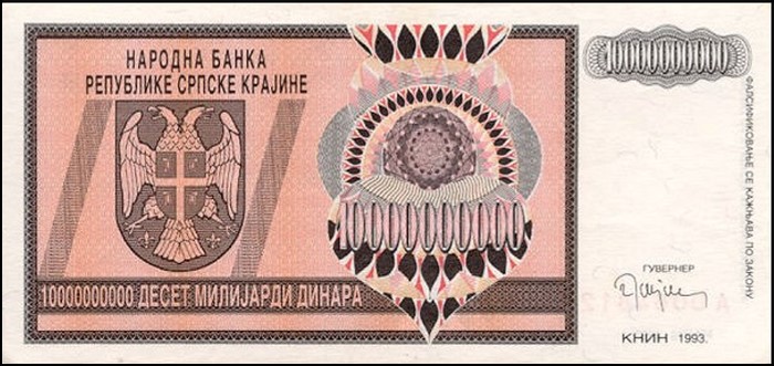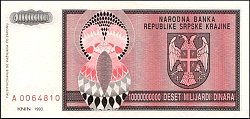![]() P.R19a 10 Milliard Dinara Knin 1993 |