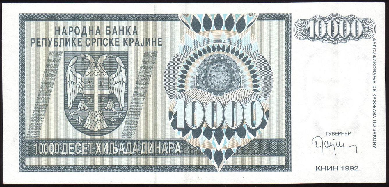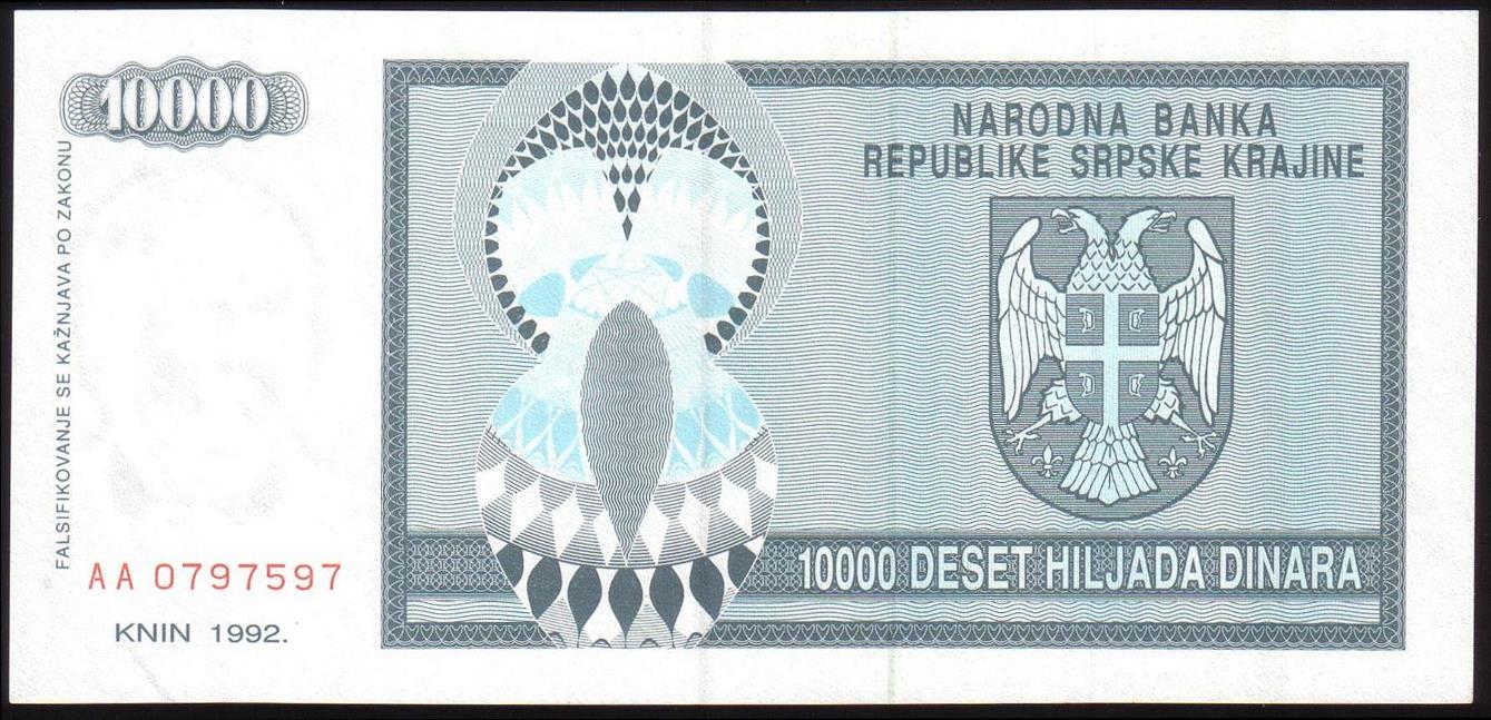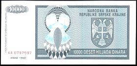 ![]() P.R7a 10,000 Dinara Knin 1992 BA |