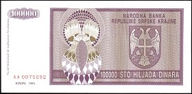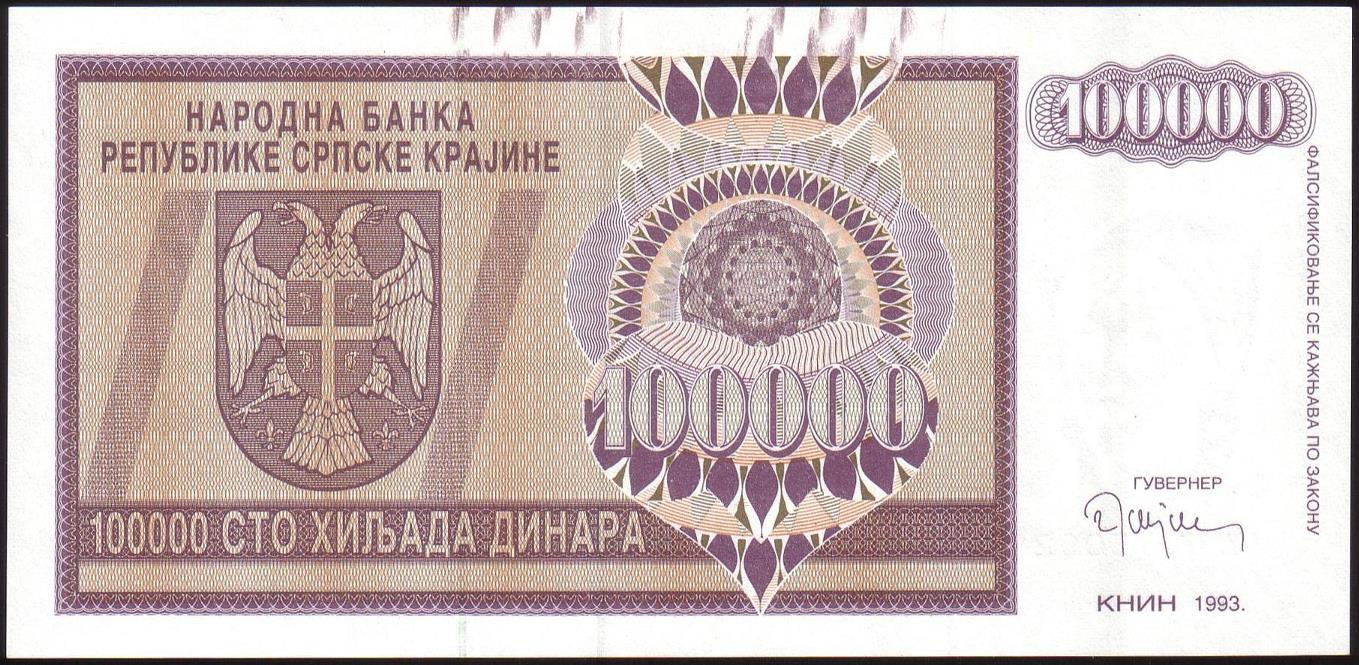 ![]() P.R9a 100,000 Dinara Knin 1993 BA |