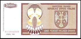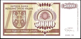 ![]() P.R8a 50,000 Dinara Knin 1992 BA |