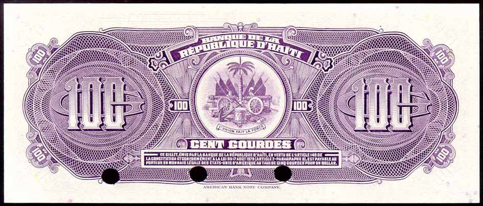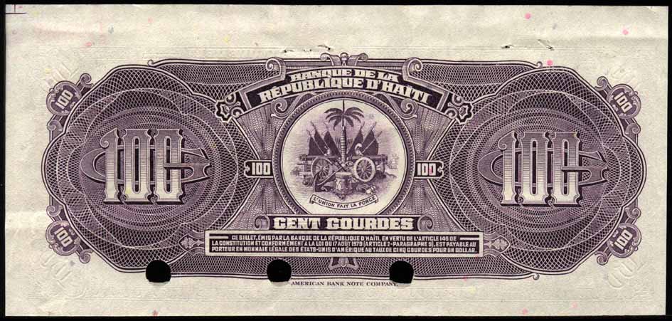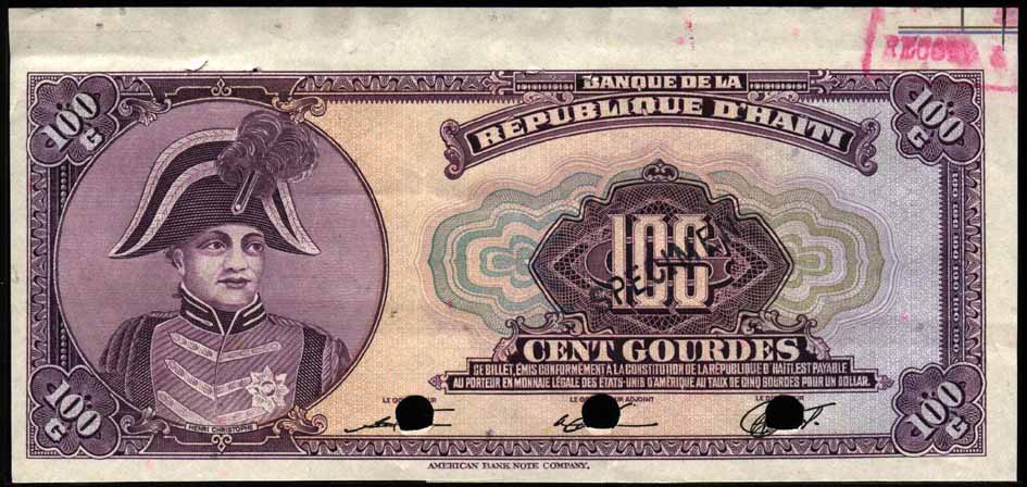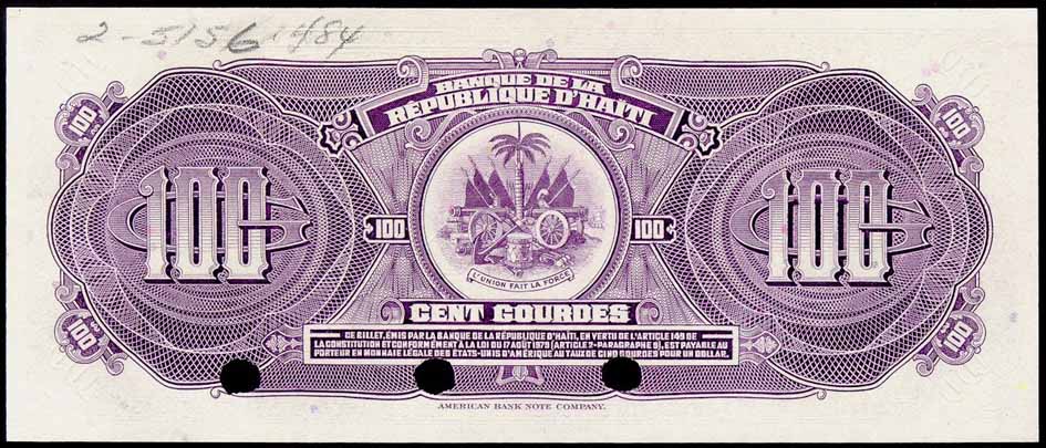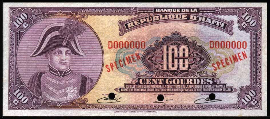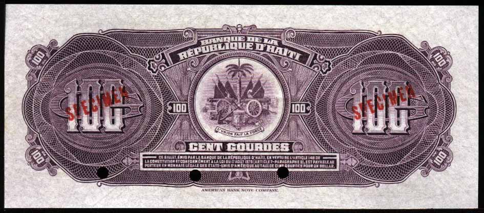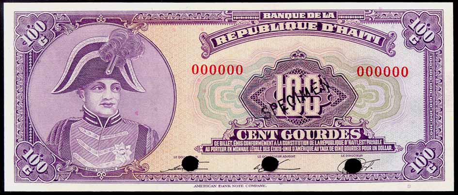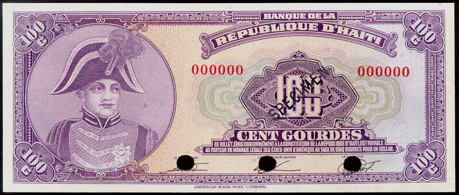 ![]() N.1090ST, P.236s 100 Gourdes ARCHIVE SPECIMEN, Sig: T |