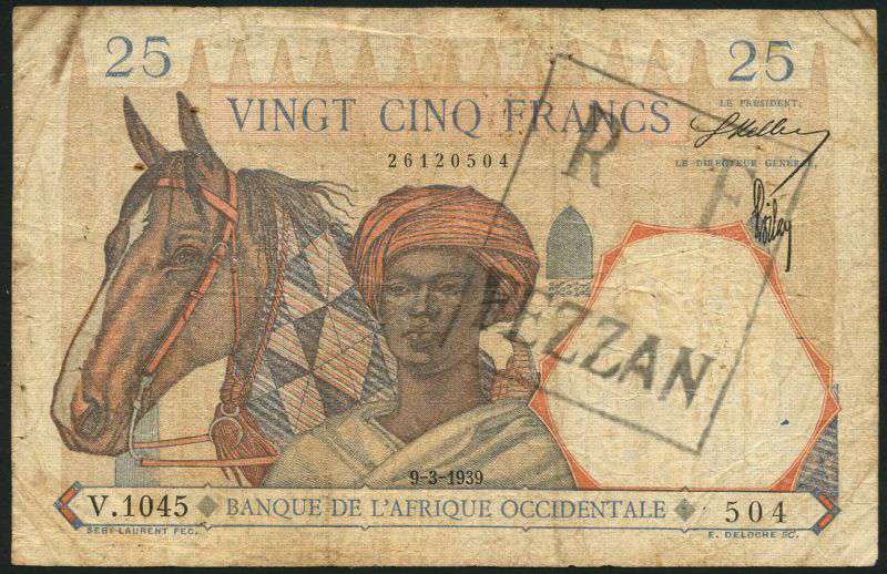 ![]() P.M10, SB.1152 25 Francs Old date 9.3.1939 AB |