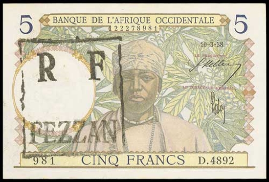 ![]() P.M9, SB.1151 5 Francs Old date 6.3.(19)41 * AB |